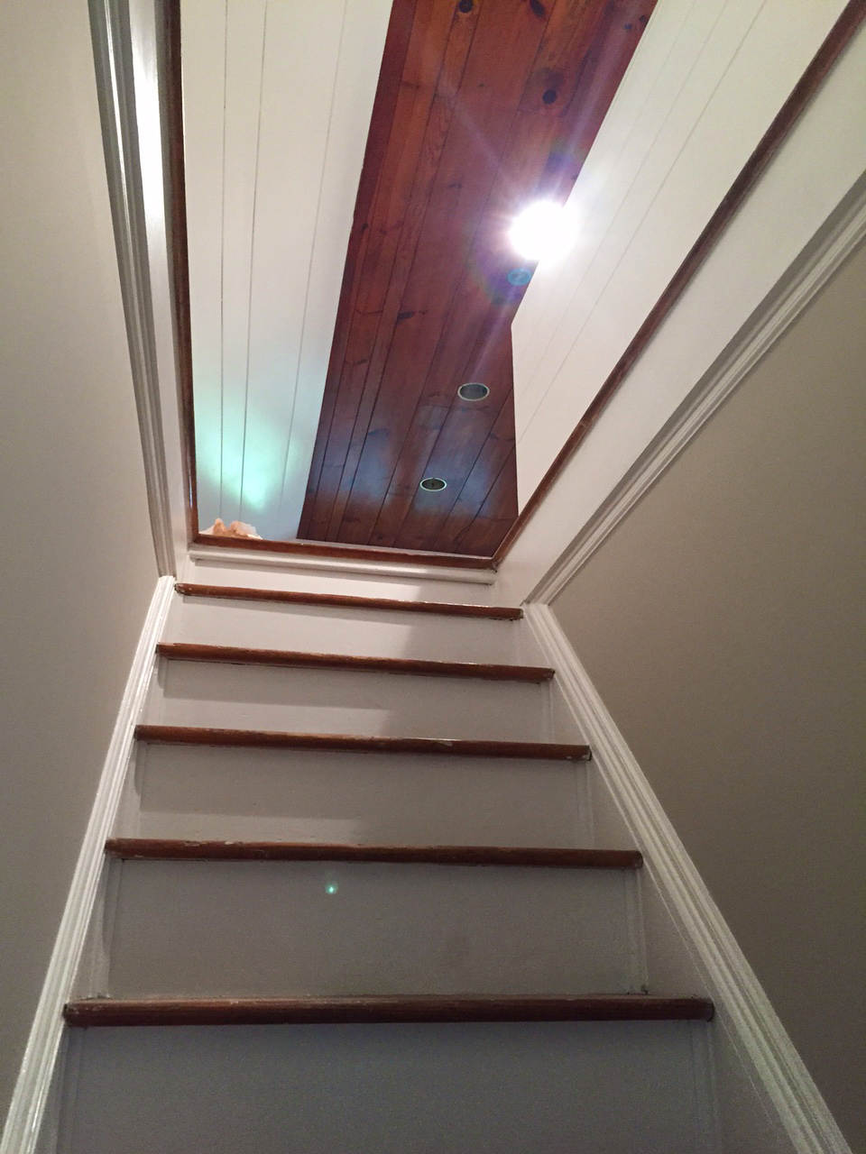 Me trying to sneak pictures of the floor-sealing progress by going down the outside steps…
