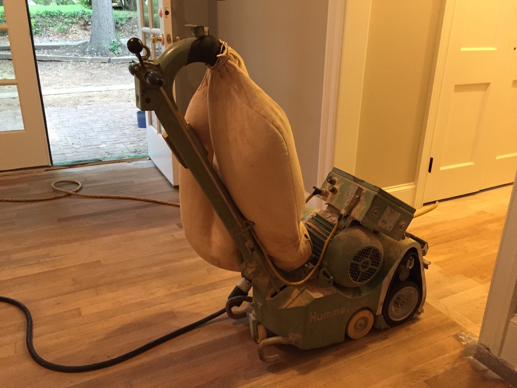 Once the old floors are sanded down to the raw wood, they could almost pass as brand new! We thought it might be difficult choosing a stain color to make the floors feel old and “original” to our house, but our refinishing crew put down a few test patches and Matthew and I both liked the “Provincial” stain color. No contest; that was it. (Finally! An easy decision!!) “Onward!” we said, so down went the stain. Three coats of polyurethane later, we have a fabulous set of floors in the nest.