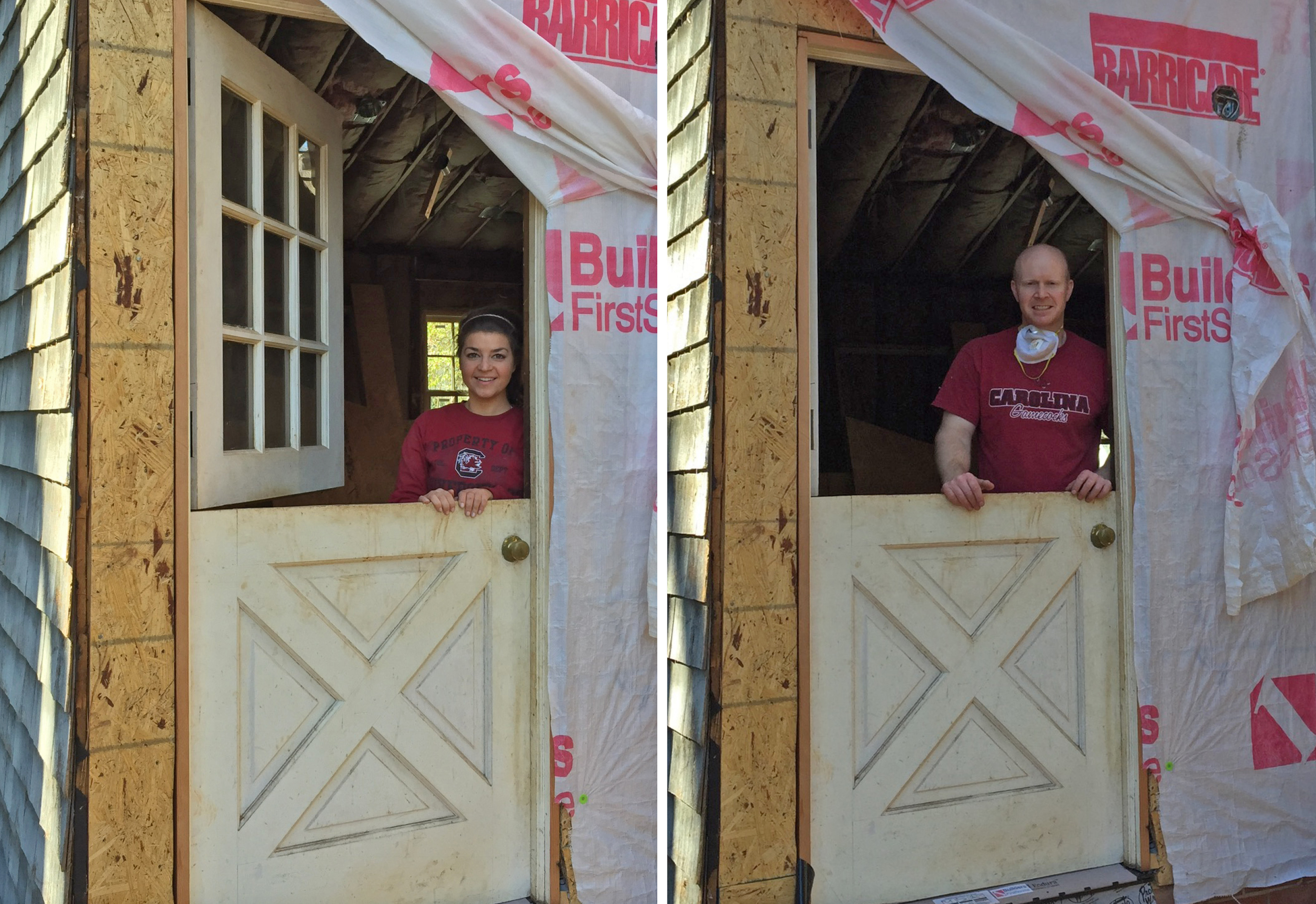 Perfect! How hard could it be to convert an interior door to an exterior one? No big deal, right? Wrong. I’ve said this more than once, but It’s always those “simple” little projects that surprise you and turn into total marriage testers (Kidding! But it was not our finest moment. 😉 ).