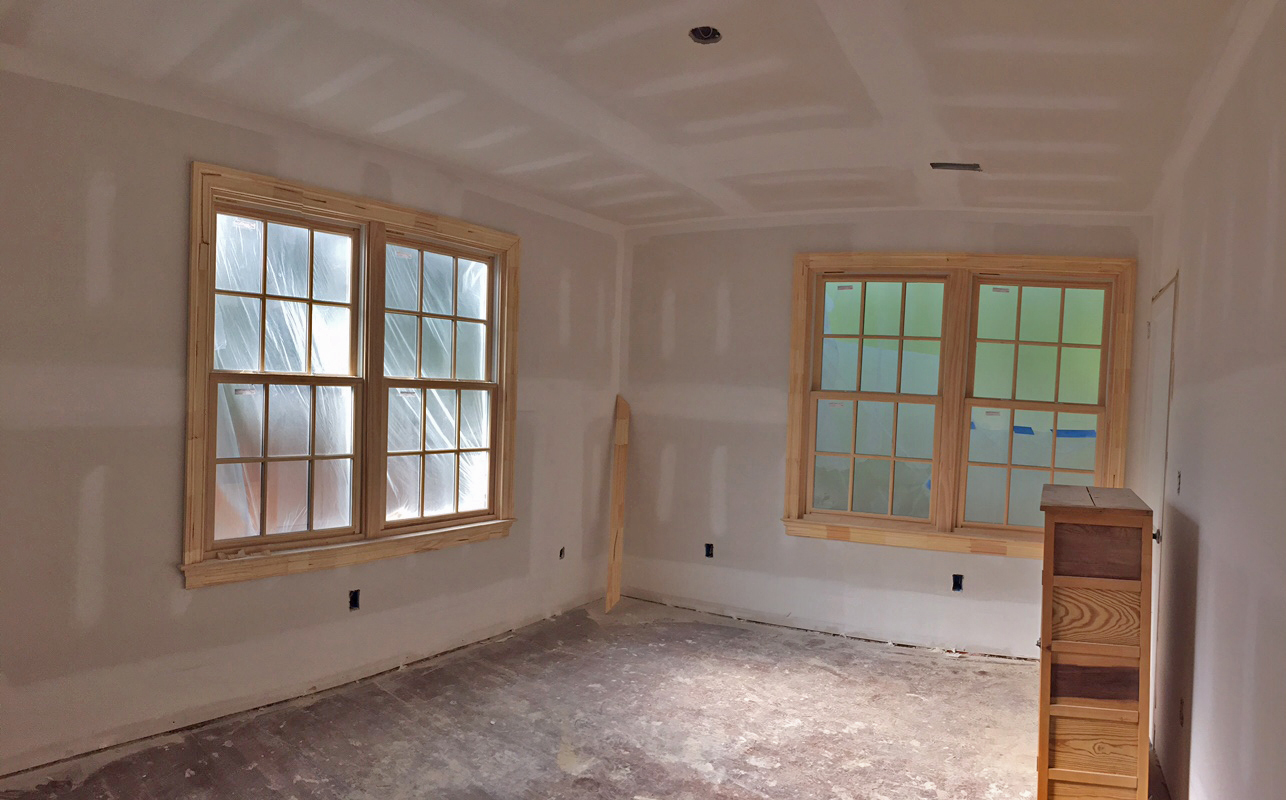 The HVAC ductwork that runs through all the upstairs dormers is being hidden with little window seats 🙂