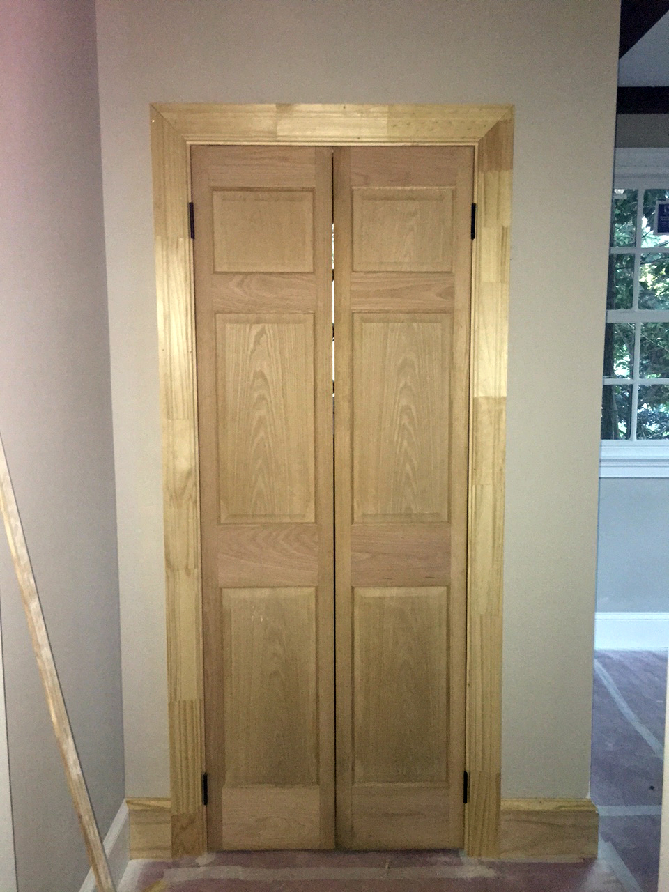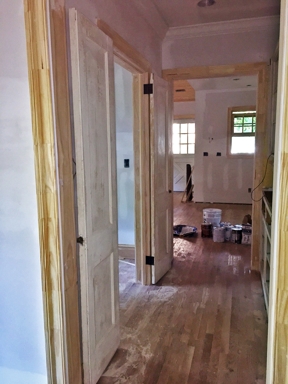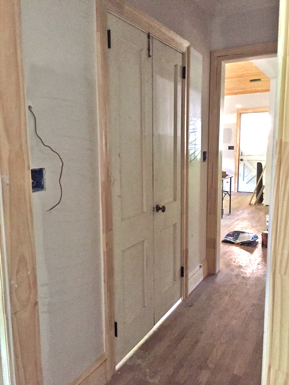 Laundry room doors are up! (This wall is new, but these doors are original to the house. We repurposed them from a small hall closet that was removed when we rerouted the hallway to the bedrooms.)