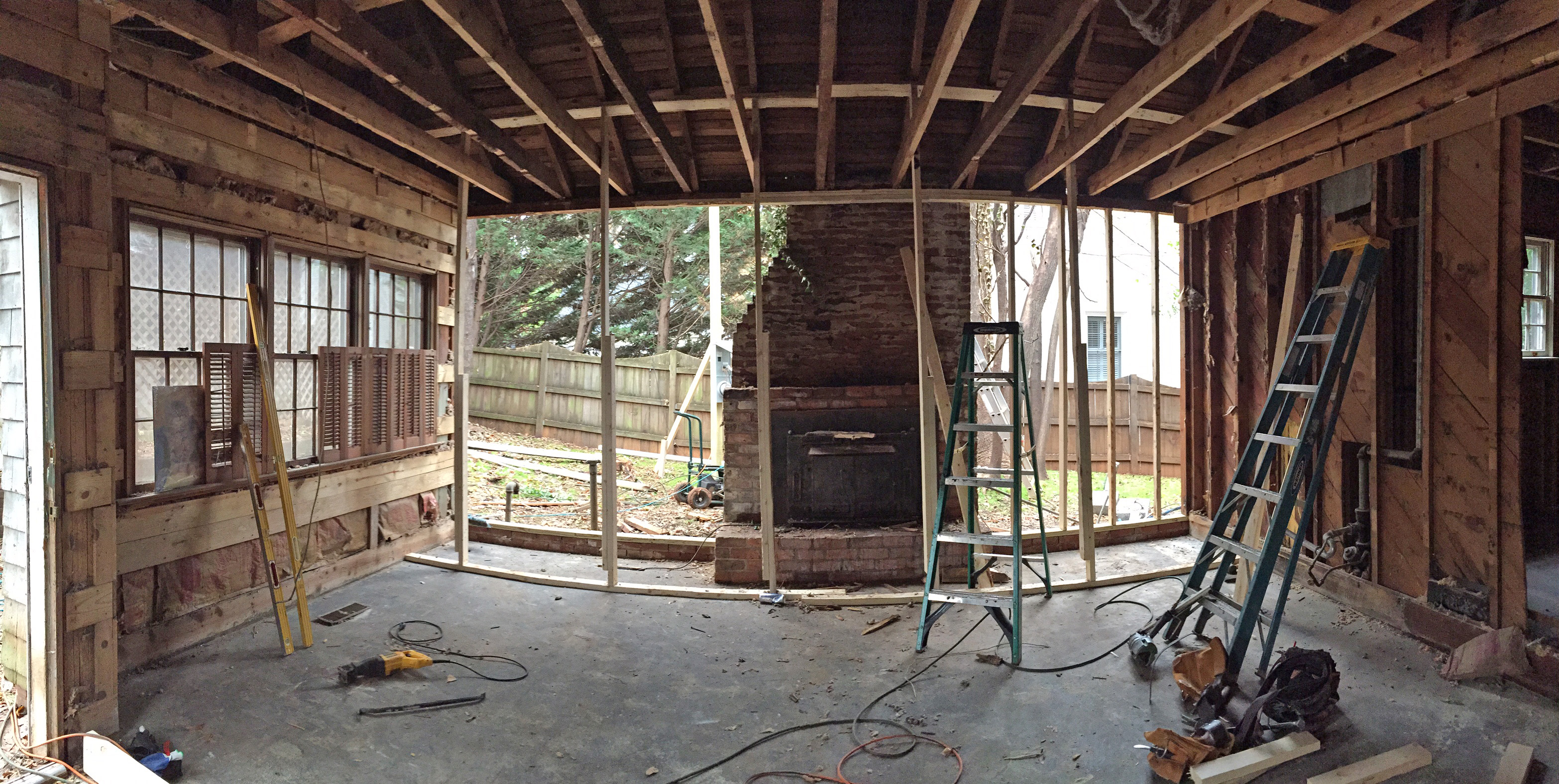 Next, we discussed what to use for the new counter top that would complement and preserve the charm of the original cabinets. We landed on the idea of “up-cycling” some of the original ceiling joists we cut out to vault the ceilings in the family room and master bedroom. We took this idea to my dad, the forester and master craftsman, to request his expertise and ask for his help to bring the new counter top to life.